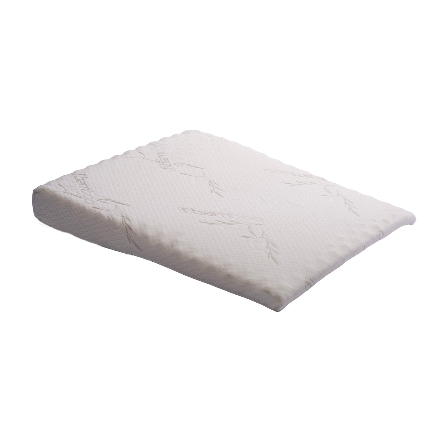 HELPS RELIEVE ACID REFLUX,SNORING,SLEEP APNEA, AND INDIGESTION. THE WEDGE GIVES YOU 5" OF HEIGHT. 100% POLYURETHANE FOAM W/REMOVABLE QUILTED POLYCOTTON COVER. 32" x 26" x 5 1/2" > 1/2"